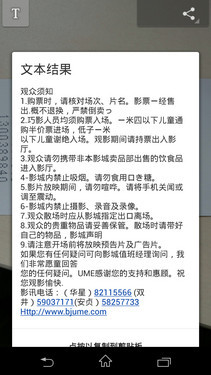 info-eye则让手机在联网状态下,取景器可对画面上的地标、条形码、二维码、文本等内容进行识别。其中可用性 比较强的是条形码/二维码和文字识别。文字识别让手机充当了扫描仪,帮助我们快速将书上的文字转化为可编辑文字,只是文字稍多时识别率会有下降。而可能是 测试版本的原因,地标识别信息与图像是互相倒置的,稍微影响了一些体验,希望正式发售时索尼会解决这个小问题。