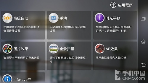 除了颇为豪华的硬件,索尼还为Xperia Z1重绘了一个相机界面,新增的时光平移、AR效果以及info-eye识别模式,大幅提升了相机的可玩性。