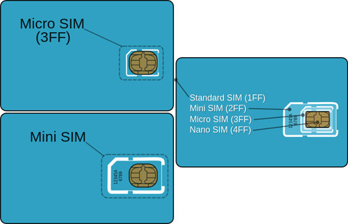 由于手机小型化,目前的SIM卡,又称“Mini SIM”,一般裁剪为25x15毫米的插入式。发售时一般嵌在一个ID-1型卡中,使用前沿着预制切口取下。