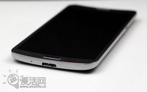 这款手机的顶部和底部相比Galaxy Note 3要厚一些,所以整体的握持感也会更加牢靠,尤其是在单手握持的时候。因为同为5.7英寸屏幕,两侧向中间聚拢,不仅贴合手掌,而且宽度相比平板的Galaxy Note 3更窄,故单手的掌握程度也会更为紧密自然。