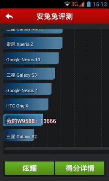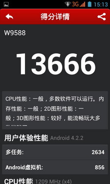 内在配置方面,飞利浦W9588搭载了1.2GHz主频的联发科MT6589四核处理器,配备1GB RAM和4GB机身内存,属于时下主流配置,保证了手机整体运行的流畅性。至于飞利浦W9588的整体性能,大家可参看下面的安兔兔跑分数据。