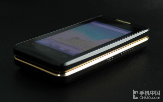 事实上,在飞利浦W9588的内屏以及实体键盘四周均包裹了一圈金色装饰条,再度提升了整机的档次和品味。另外,需要说明的是,这款手机采用折叠双屏设计,而且配备大容量电池,因而机身较厚一些,达到了20.5毫米。至于机身周边的按键以及接口设计则与飞利浦其它智能手机相似。