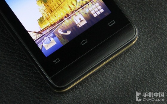 在机身正面,这款手机拥有一块3.5英寸IPS显示屏(即外屏),屏幕尺寸与苹果iPhone 4/4S相同,而屏幕分辨率则为WVGA(480×800像素)级别,显示效果清晰,而且支持触控操作。同时,在屏幕下方,飞利浦W9588则配备了三枚常见的Android触控按键,如下图所示,从左到右依次为返回键、主页键和菜单键。