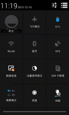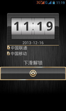 飞利浦W9588依然采用滑动解锁的方式,不过解锁图标较为个性别致,如上图所示。同时,这款手机依然保留了Android手机的桌面界面以及下来通知栏快捷方式列表,其中预置了飞行模式、WLAN、数据连接、情景模式等常用设置的开关,为用户日常使用带来了便利。