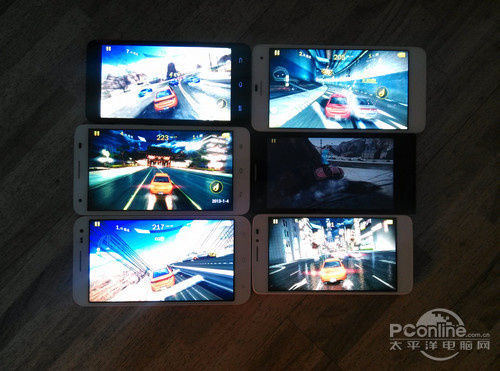 六款产品的显示表现是比较接近的,不过这也在情理之中,因为各自都采用了相近的屏幕显示技术和材质,显示的差异在于屏幕的颜色调教。整体来看,针对这六 款评测机型,荣耀3X与TCL idol X+的综合表现最佳(不排除是屏幕批次等原因导致显示效果差异),其余都在正常发挥范围里面。由于荣耀3X与大神F1在分辨率上稍低,因此精细度方面其余 机型占有一定的优势。