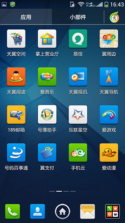 酷派5951的系统除了常规的主页面分屏外,还保留了二级详细菜单页,而此次率先推出电信版,所以系统中也预装了一部分电信官方的定制应用。