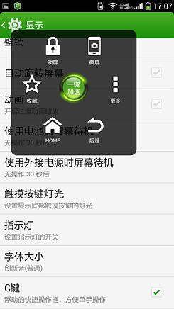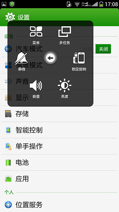 酷派5951的系统还融入了手势功能,屏幕上会有一个可以移动虚拟键,这个虚拟键可以随你拉动都屏幕显示四周的任何一个位置,和苹果手机上的手势功能形似。