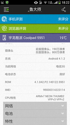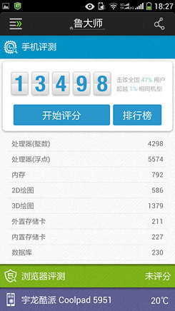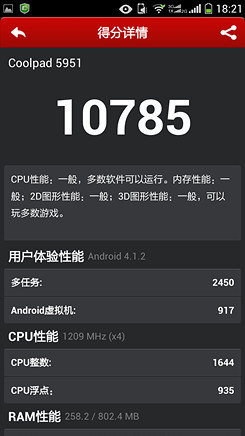 通过以上的各项性能测试结果,笔者相信大家也对酷派5951的性能有了一个直观的了解,作为一款千元机,硬件方面还是能够保证日常各项使用的,只是在对大型3D游戏的支持可能会弱一些。