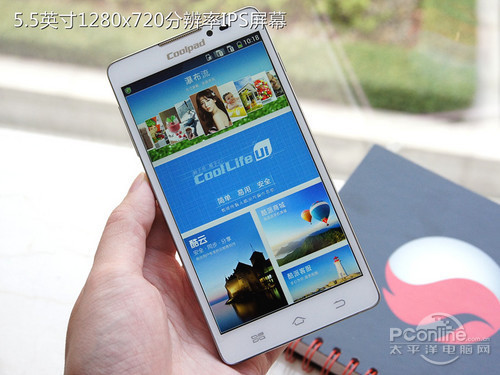 酷派5951这块屏幕采用了IPS显示技术,屏幕具有很好的通透感,低角度下观看屏幕,也不会出现偏色、发白的现象。