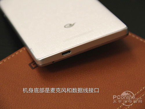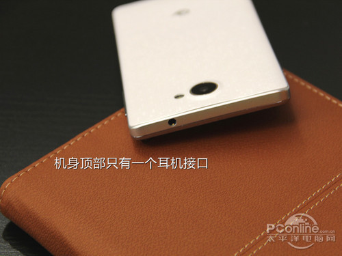 机身四周有一圈类似金属效果的工程塑料,提升了机身的整体质感。另外,机身顶部和底部分别设有耳机接口以及数据线接口,比较简洁。