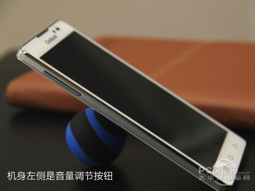 机身左侧设有一个音量调节键,按键采用了与边框一样的银色效果,按键边缘位置有精细的打磨,展现出了良好的做工,另外,按键具有一定程度的凸起,键程和反馈力度都让人非常满意。