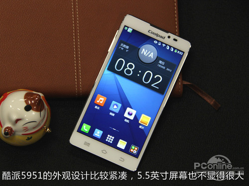 酷派5951的屏幕尺寸达到了5.5英寸,机身宽度为77毫米,机身的四个边角偏向于矩形的设计,更加时尚一些。由于机身并不太宽,所以单手握持的时候也不会感觉很撑手。