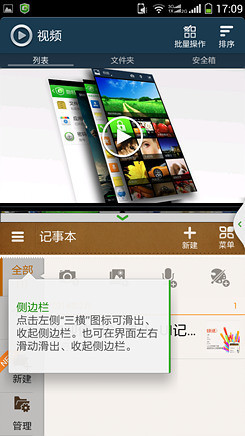 酷派5951的系统还具备智能分屏功能,开启这项功能后,屏幕左侧可以呼出一系列的应用,在这上面的应用均可以进行分屏操作,打开两个应用后,屏幕一上一下分别显示这两个应用的内容,用户可以分别进行操作,提高使用效率,也发挥了大屏幕的优势。