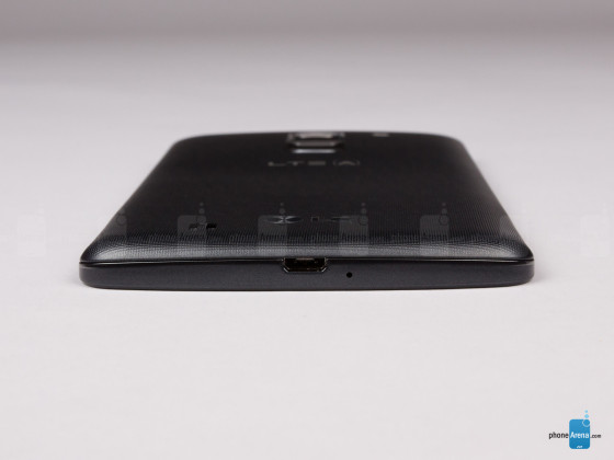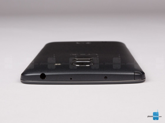 LG G Pro 2底部的设计比较简洁,常规的麦克风外加一个MicroUSB数据接口。
