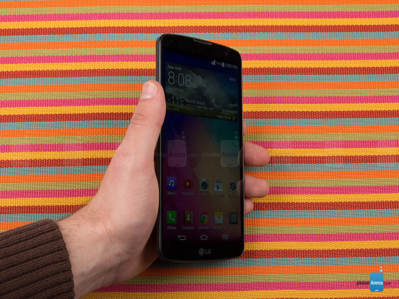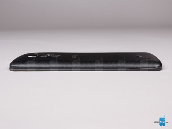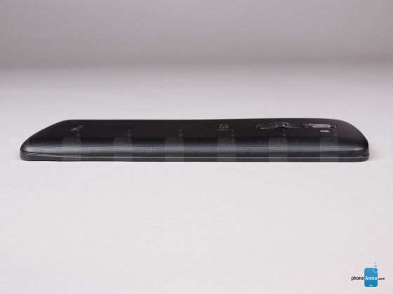 从侧面来看,LG G Pro 2的机身十分纤薄,机身重仅为172克,机身尺寸为157.9mm×81.9mm×8.3mm,最薄处仅为4.1mm,整机的体型要略大于LG G2。