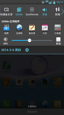 另外,LG E985T同样拥有非常实用的下拉通知栏快捷方式,其中预置了“快捷备忘录”、“QSide”、声音、数据、WLAN、蓝牙、热点等多个特色和常用设置的 开关,方便用户实时调出关闭或打开。同时,在下拉通知栏,该机还加入了“QSide应用程序”导航栏,为用户进行多任务操作带来了便利。