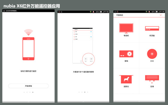 在nubia Z5S上就已经加入的红外万能遥控器功能也被延续到nubia X6上,并且数据库更大更好用。