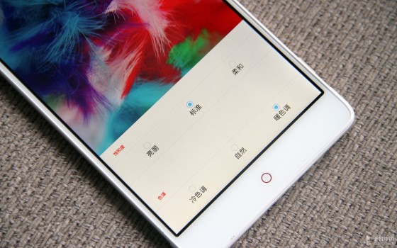 对于不同喜好的消费者,nubia X6对屏幕有着自己独特的优化。在设置菜单里,我们可以自行调节屏幕的色调,如果你对默认色调不满意,可以自己调节。
