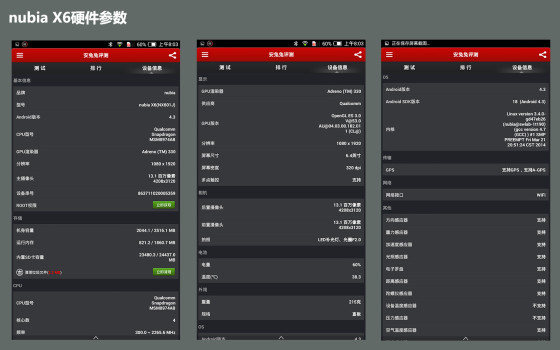 从参数上来看,32GB版nubia X6搭载一颗2.3GHz高通骁龙801(MSM8974AB)四核处理器,内建2GB RAM+32GB ROM的内存组合,整体表现可以说绝对是旗舰水准。
