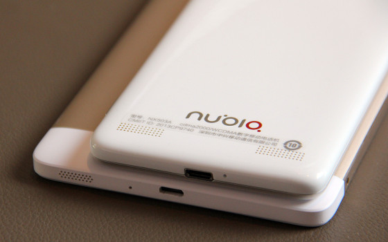 从背面结构上来看,nubia X6背后采用的是金属+塑料的两段式设计。而从侧面来看,nubia X6又是三段式设计,上下都是采用白色塑料材质,中间为金属材质,这一点看起来和iPhone 5s有异曲同工之妙。