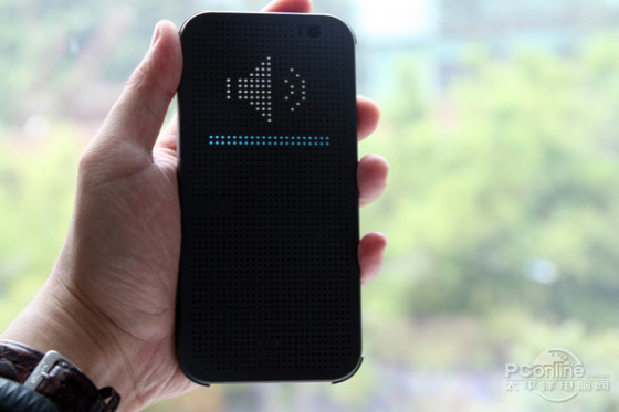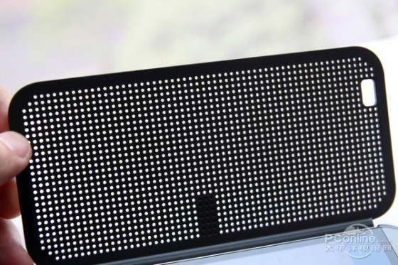 在HTC One M8的发布会上,除了M8这款年度旗舰产品之外,HTC官方也发布了一款它的周边配件——Dot View保护套,并不随机附赠,需要额外购买。这个保护套就像给M8加上“书皮”,用塑料材质制成,后背部分稍硬,封面部分稍软。装上后能包住手机的后 盖,封面就会盖住手机的屏幕。类似的产品其实也很多,例如苹果iPad的Smart Case以及部分三星GALAXY手机上也有类似配件。