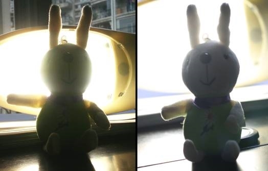 下面两幅图,背景用一个台灯开启强光,处于逆光下拍摄。由于背景的光线太强,拍摄主体的正面与背面的强烈的反差对比,手机由于宽容度有限,能记录下的细节层次明显减少很多。而单反由于感光原件大,可以接受更多的光线,拍摄的画面在层次上就明显优于手机。