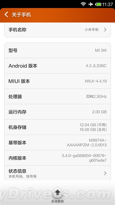 首先当然是版本号了,更新后的MIUI依然是V5版本,但在关于手机里,我们能看到Android版本号已经由支持的4.3变为了4.4.2,也就是升级之后最大的好处,能完全兼容Android 4.4的应用软件。