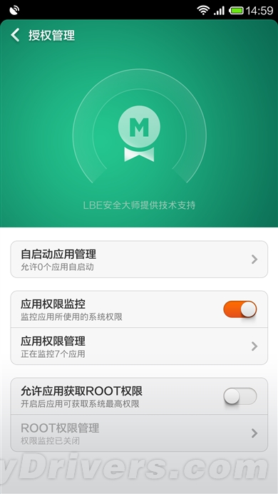 不过即使如此,假如看到这个相机应用很不爽,功耗又怎么高,想要单独的关闭关闭它的定位权限,对于原生系统来说,必须要安装一些开启安卓权限管理的 App,很是麻烦。这点对MIUI来说就不是事,点击安全中心-授权管理,其中就有一个应用权限管理,这里可以看到每款应用所需要的所有权限,并且根据自 己的需要,单独开关某个权限。