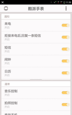 酷派智能手表在适配连接手机后可实现一些相当实用的娱乐操作,比如音乐的播放控制和遥控拍照功能。