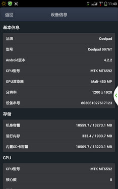 酷派大神1S的主要升级都集中在了硬件上,其2.0GHz主频的MT6592八核处理器拥有了更强大的性能,并且在功耗上也进一步缩减,另外该处理器还集成了主频为700MHz的Mali-450 MP4图形单元。