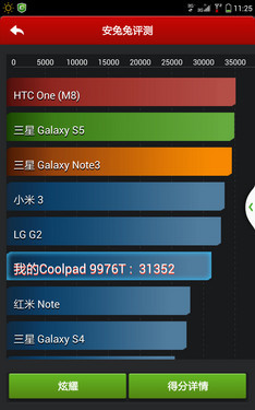 大神和大神1S的硬件升级究竟有多大提升其实很难用语言去形容,所以我们还是用数据来说话,从安兔兔硬件性能评测中的结果来看,大神1S成绩31352分,相对大神提高了20%。