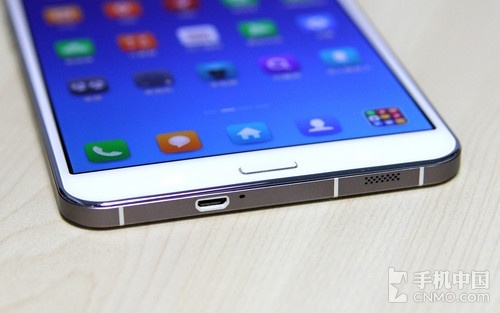 顶部和底部的两个边框集成了耳机接口和MicroUSB接口,并且它的扬声器设计也很特别,位于边框两端位置。下方为固定设计的菜单、实体Home键和触控返回键。