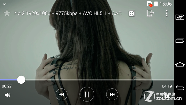从 上面表格可以看到,720P组的视频对于LG G3来说完全没有压力,而在1080P组中有5段视频在播放时出现了无法播放(不支持的文件类型)、有声无 画(视频格式不支持)的状况,这种表现对于高通骁龙801平台来说并不符合常规,不过在借助第三方MXPlayer视频播放器的软解码进行播放尝试后问题 有得到解决。另外笔者还尝试播放了一段4K分辨率的视频,其播放表现很是流畅。