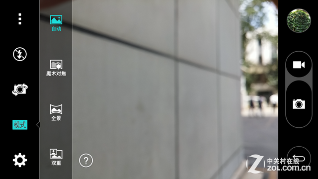 魔 术对焦类似于先拍摄再对焦,拍摄后触摸想要对焦的区域,就可以对指定的区域进行对焦,剩余部分虚化。全景模式能够实现360度的无死角拍摄,从样张来看拼 合状况良好,并没有接缝的痕迹。双摄像头拍摄这个功能去年就已经流行起来,LG G3的双摄像头拍摄模式可以调整小窗口的大小,同时点击小屏幕可以在大小 屏幕之间切换。