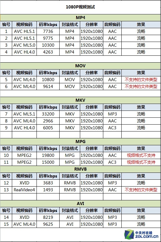 (红字结果视频在MXPlayer视频播放器上可以流畅播放)