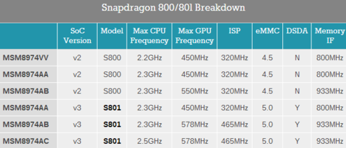 骁龙801采用了Krait 400 CPU内核(图片来自GSMArena)