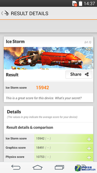 LG G3除了拥有2.5GHz高通骁龙801四核处理器外,还配备了 3GB RAM内存,这也是目前最顶级的硬件组合平台,不过在安兔兔跑分方面LG G3并未呈现出高通骁龙801+3GB RAM平台应有的分数,两万七 和三万四的成绩可以说是有些离谱,正常情况应该在三万四和四万二左右。