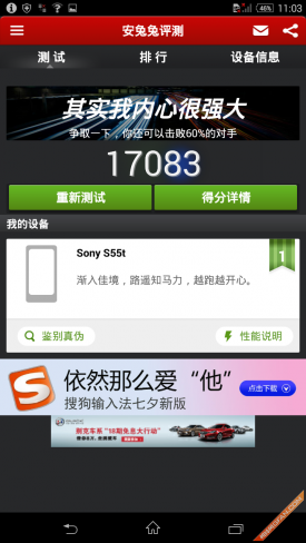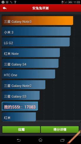 当然,要想更加直观的了解Xperia C3 双卡4G-LTE移动版的硬件性能,跑分是最直接的方式。通过跑分,我们能够将手机的性能量化,方便我们更加直观的了解到手机的性能究竟如何。