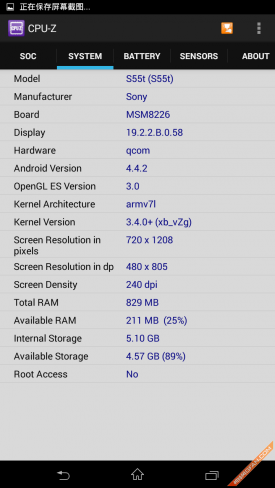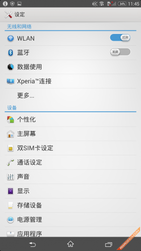 在系统设置菜单中,用户则是可以针对手机所用的功能选项进行设置,同时在手机信息中我们也可以看到,Xperia C3双卡4G-LTE移动版所搭载的系统版本是Android 4.4.2版本的。