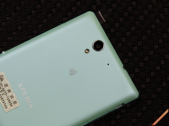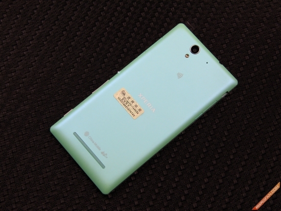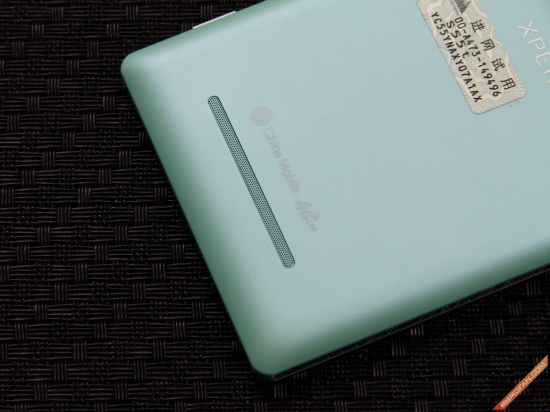 背部中间背部为XPERIA的LOGO,昭示着C3是来自索尼Xperia家族的一员。而在背面下方,则是扬声器的开口以及中国移动的LOGO。