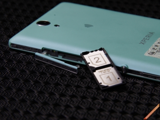 机身左侧上方位置是Micro USB接口的位置,并没有采用任何的防护,所以期待Xperia C3是一款三防手机的同学们可以醒醒了,但在Micro USB接口下的Micro SD卡槽位置则是加入了保护盖。而在机身右侧上方保护盖内则是双SIM卡卡槽,其中根据官方的说话,SIM卡槽1是支持移动TD-LTE 4G网络与TD-SCDMA移动3G网络,而SIM卡槽2则是支持GSM 2G网络。