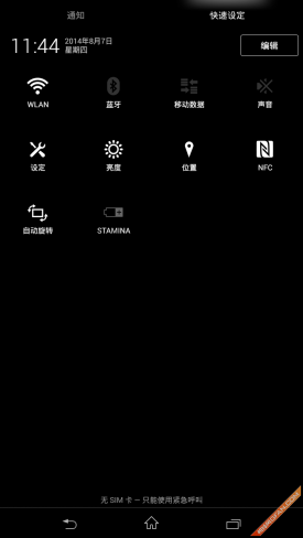 而在系统下拉菜单中,则是分两页来显示系统通知及快速设定,并且在快速设定菜单中,用户还可以对快速设定开关进行编辑,让用户自由去选择哪些开关是自己经常用到的,同时将开关加入到快速设定菜单中。