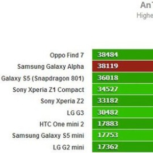 跑分方面,三星GALAXY Alpha跑出了旗舰手机应有的高性能,安兔兔测试的分数非常高。看来八核Exynos 5430芯片组的威力让高通骁龙800也倍感压力。不过,有一件事我们应该有所心理准备,手机在做测试时,手机依然会有明显的发热,加上金属比塑料更容易 导热,这意味着你会比用塑料机身的手机感到更烫手,当然,这不是三星的错。