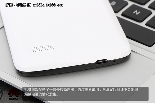 机身底部配备了一颗外放扬声器,通过笔者试用,音量足以保证不会出现漏接电话的情况发生。