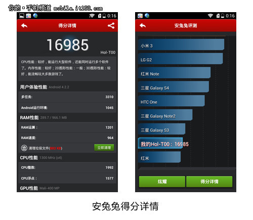 其实在硬件方面,华为荣耀3c畅玩版和荣耀3c并没有太大的差别。所以在硬件测试这一环节上,华为荣耀3c畅玩版表现的不错也是情理之中。