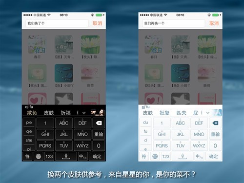 至于功能方面,肯定要比苹果自家输入法开放了很多。尤其是换肤功能,喜欢简洁的男士可以使用默认皮肤,非常素雅。如果是女孩儿,估计各种萌系皮肤就要粉墨登场了吧。
