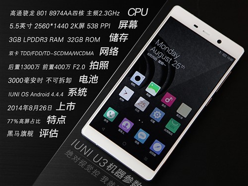 2000元2K屏幕手机 IUNI U3评测
