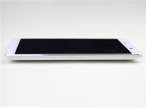 IUNI U3机身三围尺寸为145.0*74.9*10.3mm,从侧面来看最大厚度为10.3mm,这个厚度在业界来讲并不薄,但弧度的设计使得持握又很舒适,机身左侧没有任何按键,干净整洁。