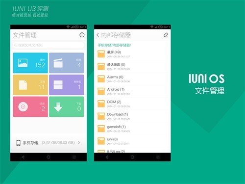 文件夹管理也是IUNI OS在日常软件操作比用的软件之一,如果大家细心的话可以发现,IUNI OS是没有视频软件图标,播放视频需要通过文件管理中进行操作播放。