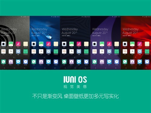 除了壁纸的选择之外,U3搭载的IUNI OS在主屏壁纸上也进行全新的更新与添加,以上几款壁纸从视觉方面来看,更加多元化,如果你用够了渐变色块壁纸,换一种风格也是不错的选择。